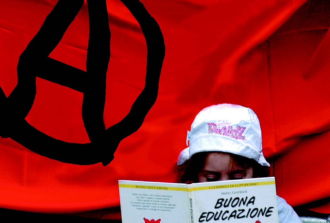 Nata nel 1964 a Parigi in scantinati ribollenti di idee e aspettative, la A-cerchiata muove i primi passi a Milano su volantini ciclostilati la cui matrice viene incisa a mano con qualche incertezza. Il Sessantotto la fa poi rotolare sui muri di tutto il mondo, dove inizia a parlare nelle tante lingue dell’anarchia.