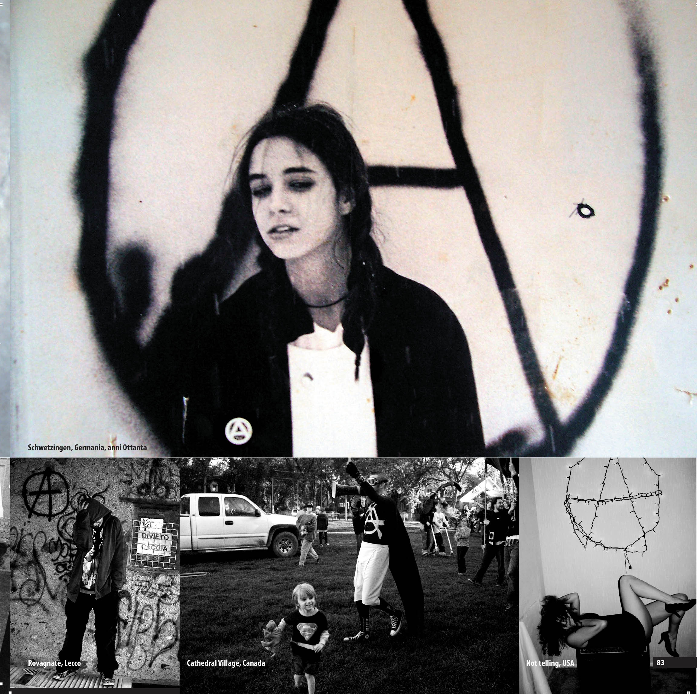 Le immagini sono riprese dal libro fotografico a cura di Gianluca Chinnici A-cerchiata. Storia veridica ed esiti imprevisti di un simbolo (elèuthera, 2008) con interventi di Fulvio Abbate, Pietro Adamo, Adbusters Media Foundation, Android Tattoo, Roberto Freak Antoni, Amedeo Bertolo, Chris Carlsson, Pino Cacucci, Marianne Enckell, Marco Philopat, Goffredo Fofi, Dori Ghezzi, Enrico Ghezzi, Matteo Guarnaccia, Tomás Ibáñez, Luciano Lanza, Maurizio Maggiani, Yoko Miura, Maria Nadotti, Clelia Pallotta, Marco Pandin, Andrea Perin, Ferro Piludu, Fabrizia Ramondino, Paolo Rossi, Marco Rovelli, Giorgio Triani, Luca Villoresi, Wu Ming 1, Salvatore Zingale.