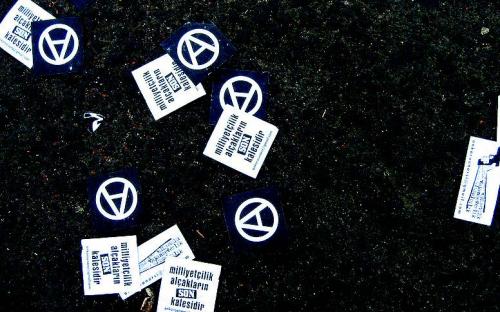 Si tratta forse di una «dissacrazione»? No, affermano i suoi padri putativi, Tomás Ibáñez e Amedeo Bertolo, convinti che lungi dall’esser stato concepito come un segno «sacro», è al contrario un segno del tutto profano che anche nelle sue «distorsioni» continua a mantenere una potente carica di rivolta.